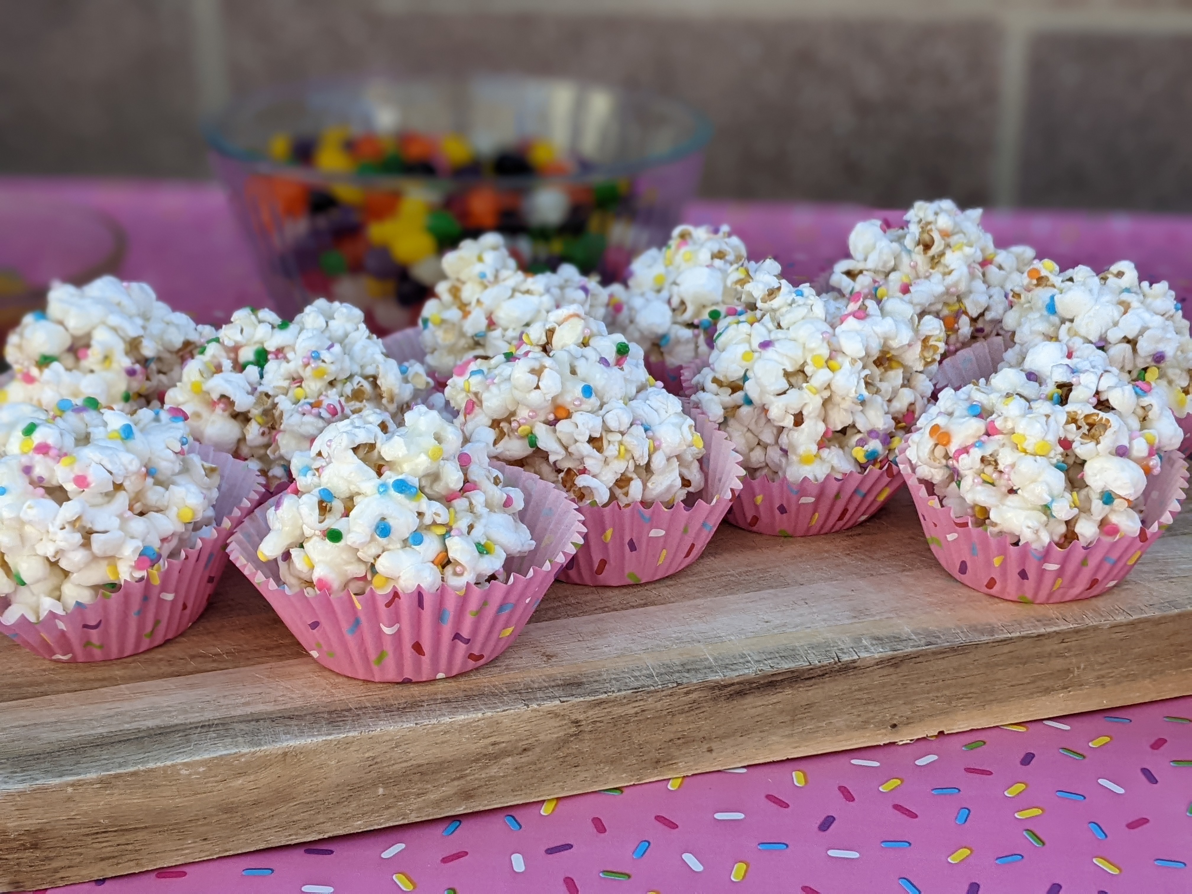 I warned all of the parents ahead of time….make sure your kiddos eat their veggies for lunch before you come over! We really leaned into the sweets theme and served a buffet of sweet treats. The party was at 2pm, so no official meal was expected. I still had a crockpot of pulled pork and rolls with a basket of chips for those who needed a little heavy afternoon snack. The adults went for the pork sandwiches and the kids definitely stuck to the sugar table…sorry parents! But I KNOW they had FUN!